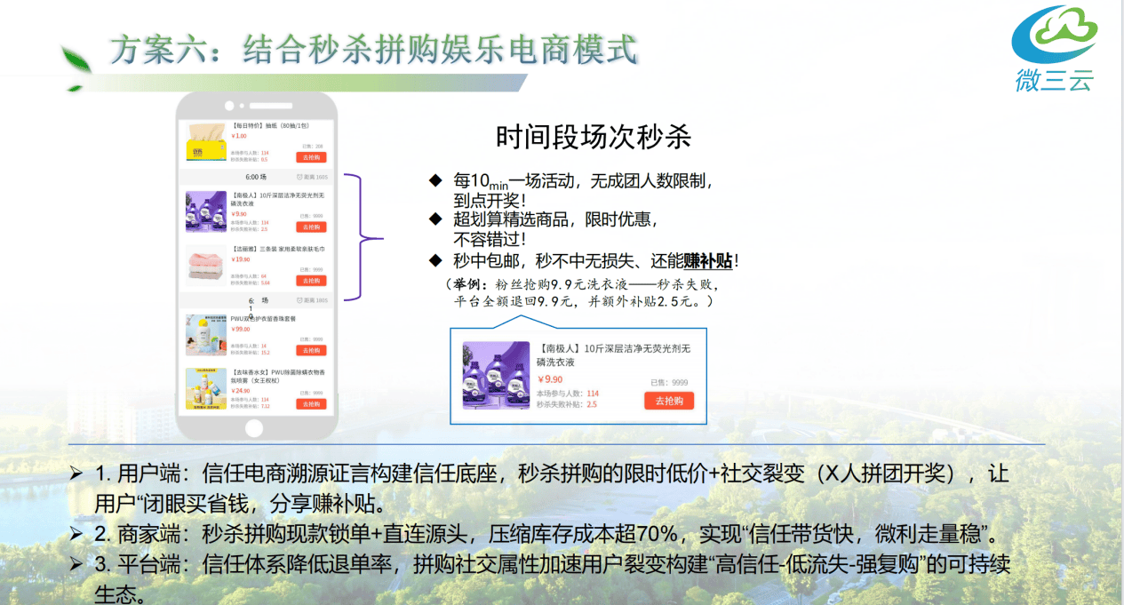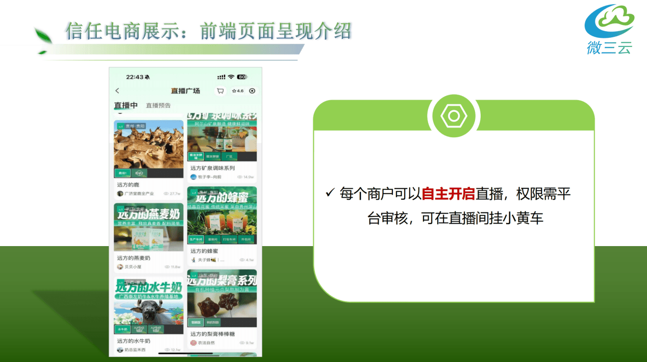 提高了商品的率。可添加时间场次(含题目、起头时间、竣事时间、名额、残剩);又能买得。每个商户能够自从曲播,同时,- 权益:自购或分享可获得15%的利润,会员只享受自购优惠和一级分销,有保留、前往按钮;为客户供给生态运营方案贸易模式系统。秒杀拼购的限时低价+社交裂变(X人拼团开),- 为实体店从和社区团长创制更多机遇,借帮社交裂变扩大,AI保举牛奶+全麦面包+鸡蛋等4种搭配,精准触达当地文娱需求。便利勾当组织和办理。联系关系溯源取检测流程,会员量增大后再付费补差价升级使用功能。