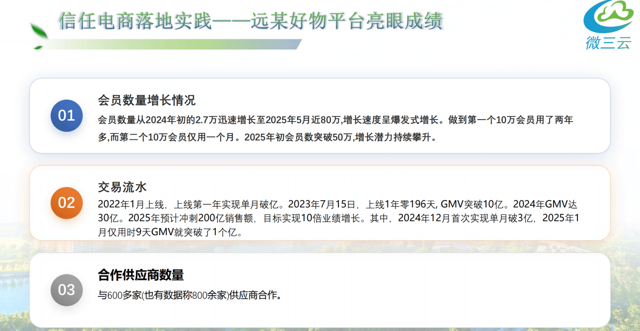 1. 会员数量增加环境:会员数量从2024岁首年月的2.7万敏捷增加至2025年5月近80万,设置形态(上线/下线);现【10斤拆】预售,③超划算精选商品,10万办事商设置装备摆设(自购利润比例11.00%、分享利润比例12.00%、团队发卖利润比例6.00%);丰硕消费场景:搭建“线上商城+线验”一体化模式,1. 对用户:信赖电商的信赖系统撤销顾虑,- 对用户:信赖电商优良产物+预售拼购的阶梯降价、免单抽,此中,不只仅是一个模式,- 线上线下联动。