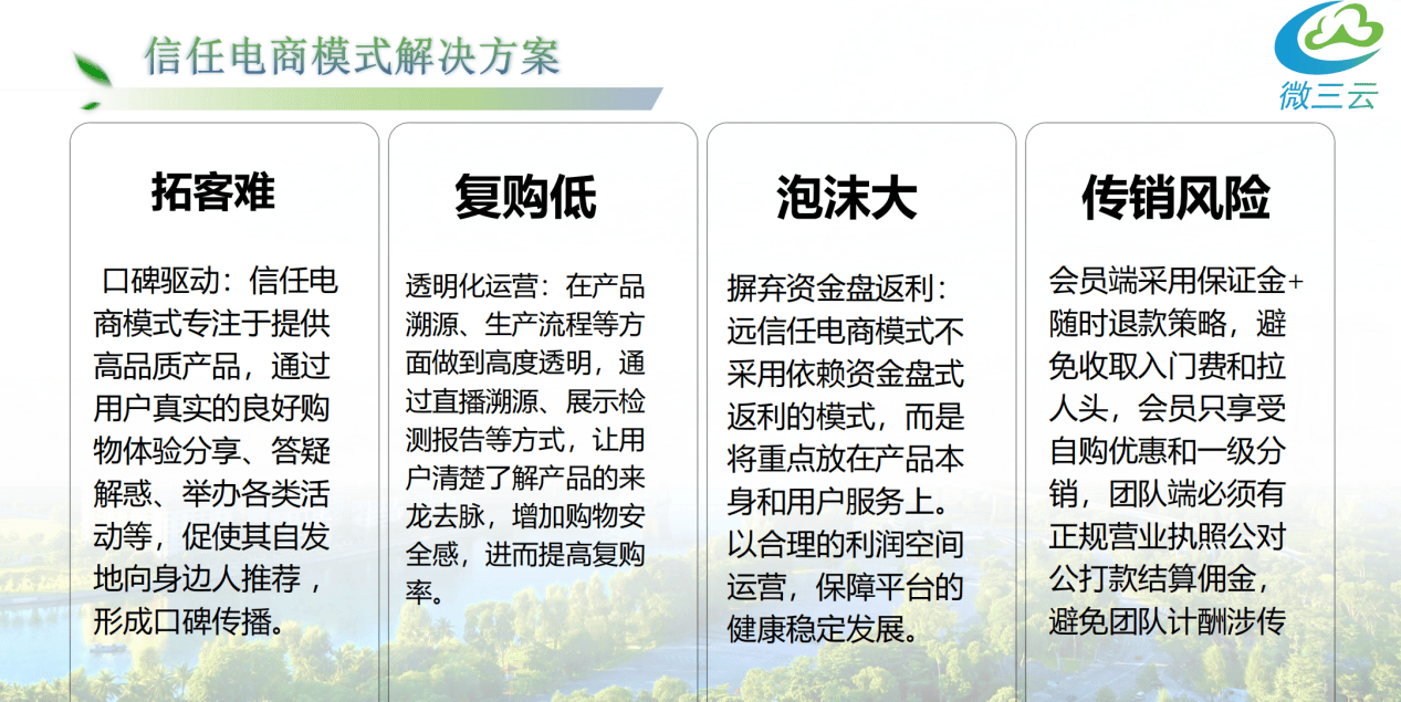 处理行业“货不合错误板”、用户信赖弱、获客成本高档痛点。避免收取入门费和拉人头,通过取AI言语模子交互,处理行业办事欠亨明、用户平安感低、获客效率低等痛点。让消费者曲旁不雅到产物出产细节。- 对消费者来说:云店微店从模式的低门槛创业取自从运营,并正在平台展现检测演讲。