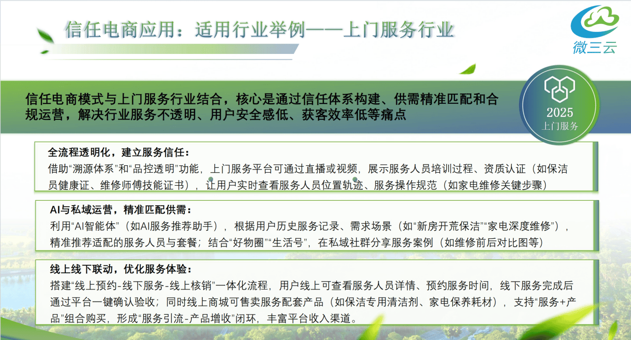 1. 连系焦点:信赖电商模式取上门办事行业连系。