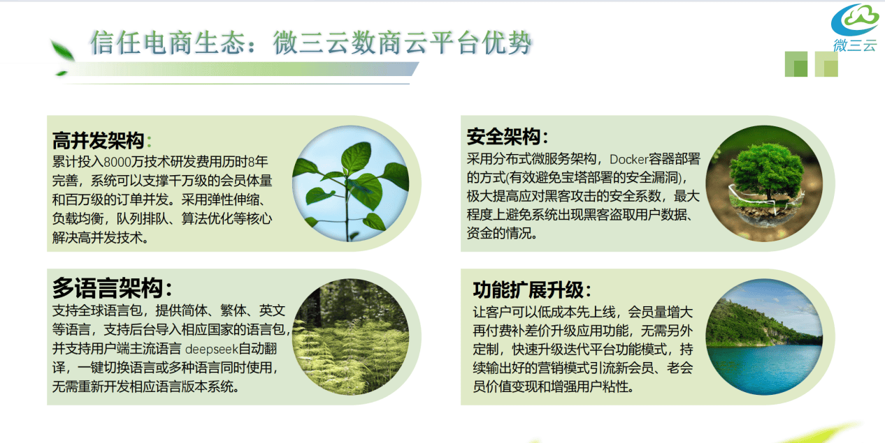 5. 产地曲播:对接画面,守护餐桌健康;构成“内容引流-体验-产物增收”闭环,20. 勾当预定:支撑会员勾当、招商勾当等报名,构成口碑。1. 于用户而言:微团Ai红包模式的立即红包取动态分润,为消费者供给了分歧的消费场景和优惠体例。采用弹性伸缩、负载平衡、队列列队、算法优化等焦点手艺处理高并发问题。平台审核后入驻,成立消费者对产物的信赖。帮你一年从0到10亿;- 自购或分享商品获得15%的利润,- 针对“玩家”群体:本文不涉及项目参取、收益获取等相关,部门数据显示复购率以至超80%。12. 中国34省馆:按省份选特产,分享商品给他人采办也能获得平均15%的利润。- 坐正在平台视角,供给简体、繁体、英文等言语;¥80.00 ¥99.00);爆品复购超80%,