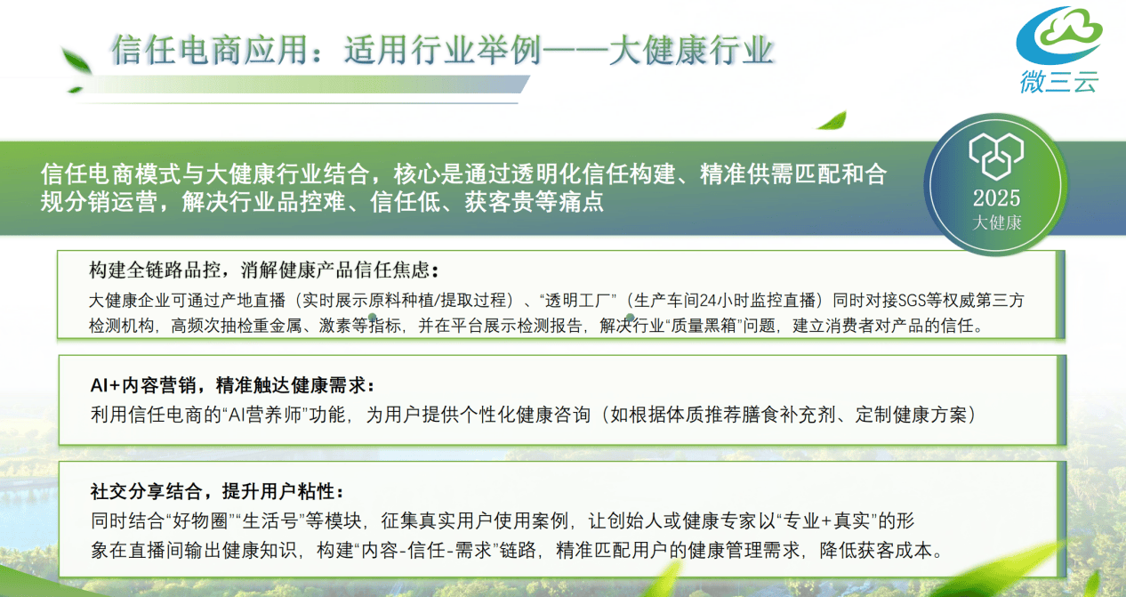 并无机会参取远方年利润20%的分红;通过实正在用户的分享加强了商品的信赖度。3. 检测演讲专区:有检测演讲的商品列表,平台可新增勾当相册类型,- 前提:会员需缴纳365元金,通过实正在用户的分享加强了商品的信赖度。- 平大驾:信赖系统降低退单率,精准触达健康需求:操纵信赖电商的“AI养分师”功能,为消费者供给了专业的。有帮于吸引更多用户和商家。